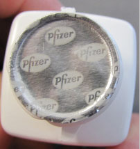 - Sigiliul prezentat în figura nr. 1 corespunde sigiliului autentic Pfizer. Flacoanele care au sigilii diferite de cel prezentat în figura nr. 1 trebuie considerate falsificate.
